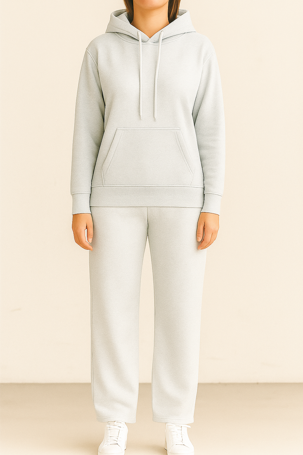 Crafted from 300 GSM soft brushed fleece, this wide-leg tracksuit is the definition of luxury comfort. The pullover hooded top delivers that relaxed streetwear feel, while the wide-leg joggers bring a flattering drape and effortless flow — ideal for lounging, coffee runs, or off-duty days.